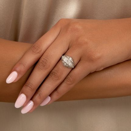 Sleek and modern, Art Deco design brought jewelry into the machine age. Yet these stylish pieces still found room for the fine forms and lines of previous eras within their elegant architecture. In particular, we see many peaceful co-habitations of Edwardian and Art Deco styles together.