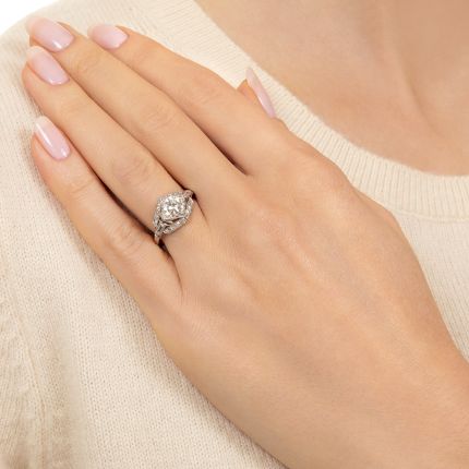 Art Deco Geometric .82 Carat Diamond Engagement Ring