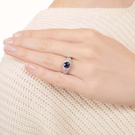 Art Deco-Style 1.42 Carat Sapphire and Diamond Ring - GIA