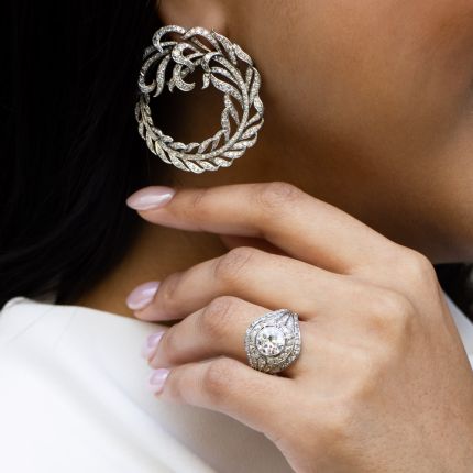A resplendent, shimmering gentle dome, exquisitely pierced and aglitter with 70 antique single-cut diamonds, forms a fabulous frame around an ebullient and exceptional icy-white 1.81 carat European diamond, in this stunning Edwardian/early-Art Deco 'cigar band' style ring, expertly hand fabricated in platinum - circa 1920. Delicate milgrain edging throughout adds the final subtle detail to this breathtaking beauty. Total diamond weight, 2.46 carats. Accompanied by a GIA Grading Report stating: F color - SI1clarity. Currently ring size 7.