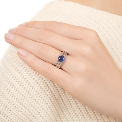 Estate 1.67 Carat Sapphire And Baguette Diamond Ring - GIA