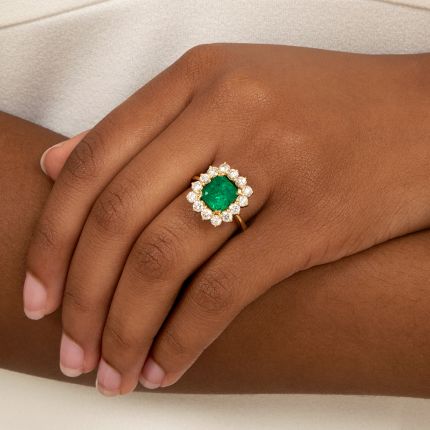 Estate 2.65 Carat Colombian Emerald and Diamond Halo Ring - GIA F1