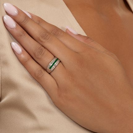 Estate Three-Row Emerald and Diamond Ring